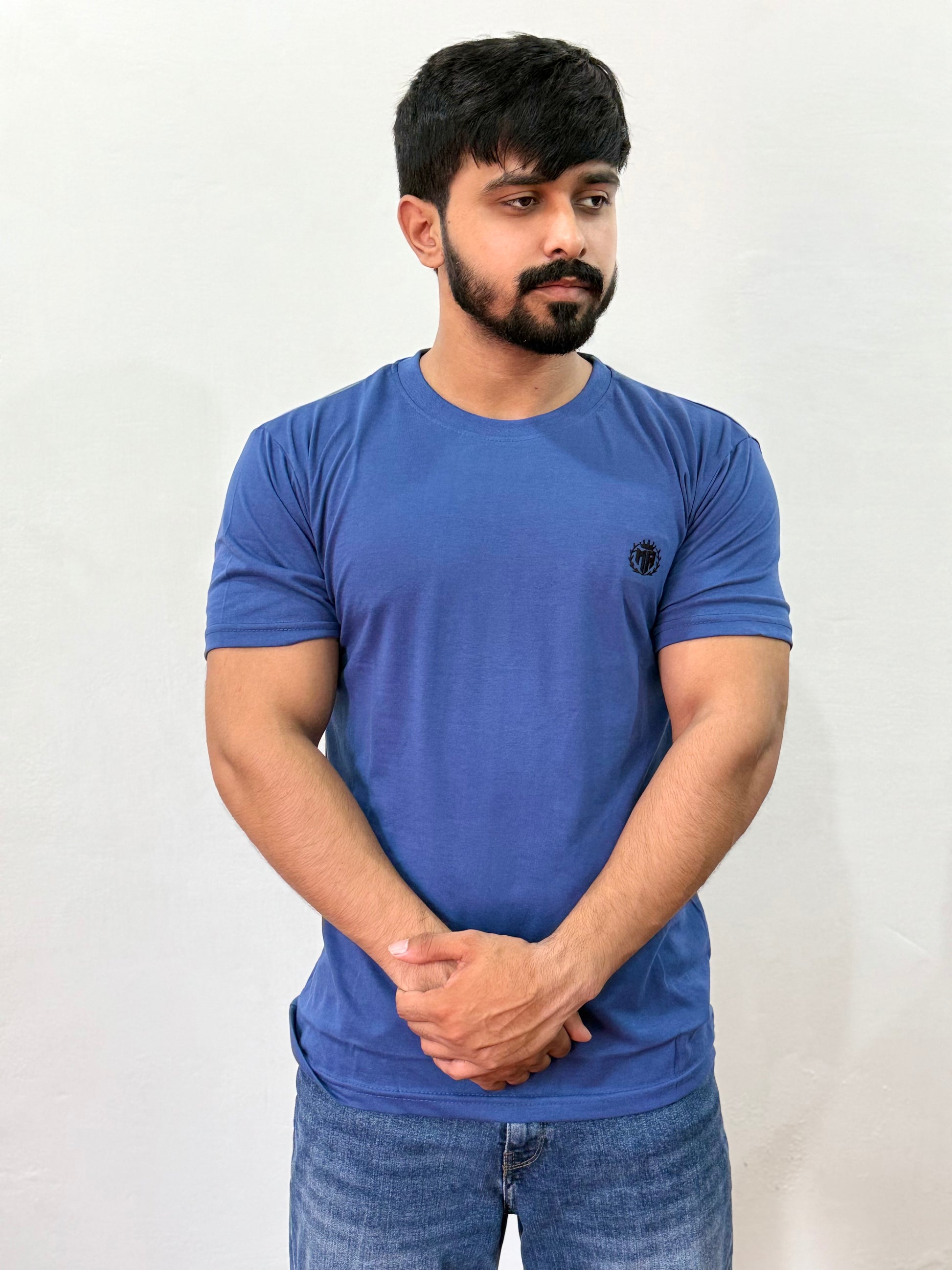 Premium Blue Round Neck T-Shirt - 100% Cotton | Soft & Breathable | Regular Fit